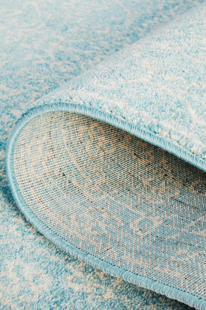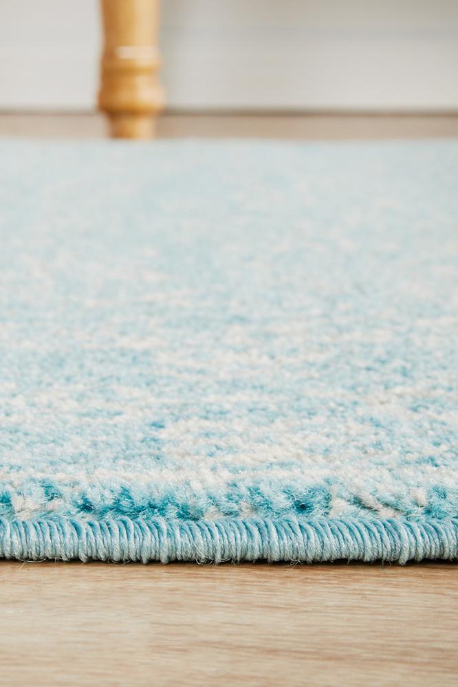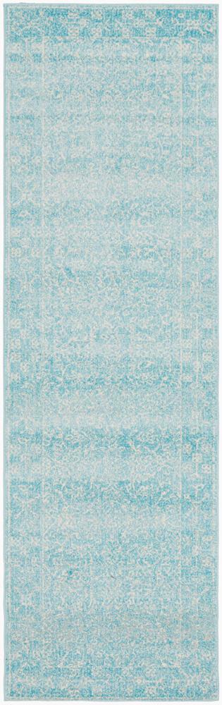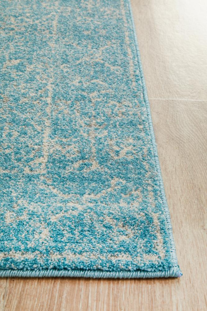 Guaranteed to bring elegance in simplicity and leaves no difficulty in choosing where to position this piece. Evoke Transitional Rug brings forth the Evoke Depth Blue runner pile which features a blue and off-white tone dominant piece expertly crafted and power loomed to perfection. It is made in Turkey utilizing the finest set of silk and acrylic, stain proof leaving a lasting image for everyone while maintaining that comfort and luxury.