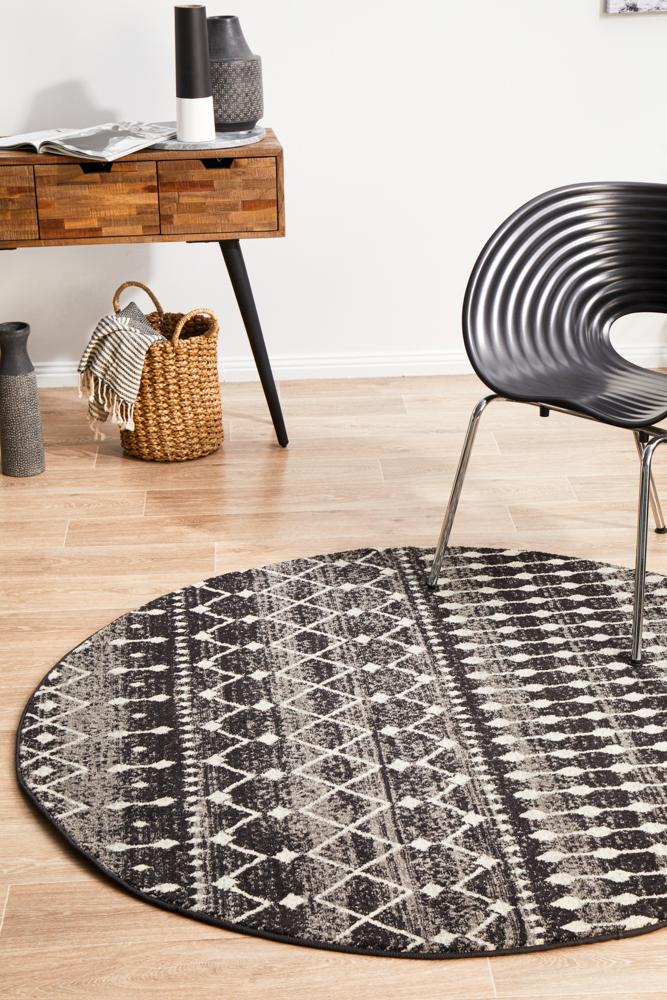 Evoke Simplicity Black Transitional Round Rug